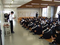 授業参観です。密を避けての廊下からの参観の様子です。コロナ禍において、授業参観ができない今、コミュニティスクールの皆さんには、本日を含めて平常授業での授業参観していただくのは年間2回です。生徒たちの授業の様子を見て感じたことや意見等いただきました。