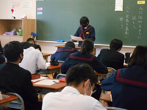 B組とC組で、人権学習発表会を行いました。富田中学校で3年間で学んできた人権学習の総まとめとなります。人種差別、障がい者差別、男女差別やLGBTなど、一人ひとりが選んだテーマで作文を書き、自分の考えや思いを語っています。差別ない、一人ひとりが笑顔でいられるような社会となるよう、その思いを行動にうつしていきましょう。