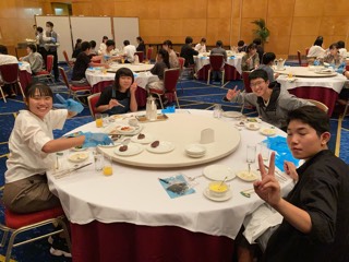 班の仲間と食べる夕食は格別です。自然に笑顔が溢れてきます。