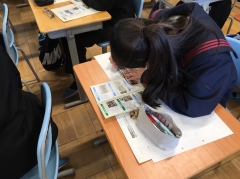 ②その記事を大きな紙に班でまとめ新聞にまとめます。