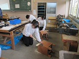 2年生の技術では「木工」でのこぎりと格闘。