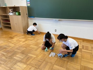 教室掃除も班員みんなで役割分担がバッチリ。みんなが責任をもって取り組みます。