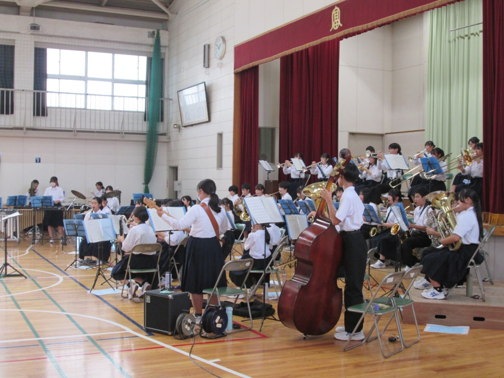 本日、吹奏楽部が富田小学校を訪問し、演奏を行いました。