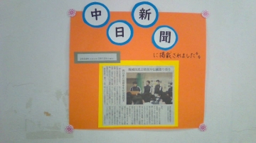 朝刊・北勢版に掲載されました。校内にも掲示してあります。