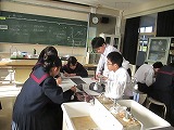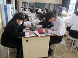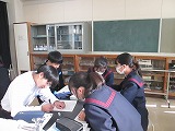 理科室では頭を突き合わせ何やら相談している声が・・・。覗いてみると、「重さによってばねの長さが変化することをグラフ化するためのグループワークがされていました。