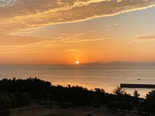 ホテルの部屋から見ることができた、美しい日の出です。2日目も良いお天気で行程に臨めそうです。