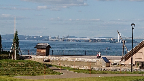四国水族館から海を見ると、瀬戸大橋が見えます。これで瀬戸内海に架かる橋を3つ見ることができました。