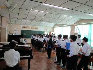 10月21日(月)の6限目から、合唱特別日課がスタートし、各クラスで本格的に合唱練習が始まりました。歌声を聴いてみると、さすがは3年生。声量も出ていて、ハーモニーもきれいです。しかし、自分たちでは、「まだまだ!」と熱心に練習しています。当日は、どんな素敵な合唱になるのか、今から楽しみです。