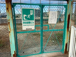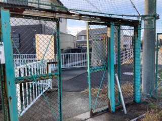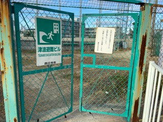 富田中学校は地震・津波等緊急時の場合の指定避難場所です。その際、地域のみなさんが、迅速に安全に避難できるための通用扉が富田中学校には2か所設置されています。写真のようにグラウンドバックネット裏の通用扉が、老朽化による劣化から今回このように新しい通用扉として完成しました。