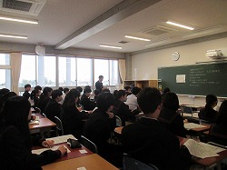 2限目には対面式を行いました。生徒会長をはじめ、役員のみんなが「困った時は、先生や先輩を頼ってほしい」と頼もしいアドバイスがありました。新入生の代表者からは、「いっしょに頑張っていきます」と決意がのべられました。校歌の紹介や花の贈呈などもふくめ、なごやかにすすみました。