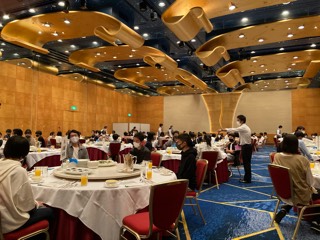 間もなく初日の夕食です。広くてとても豪華なバンケットです。密にならずに、ゆっくりと食事ができそうです。
