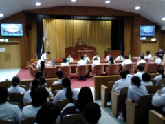 参議院特別体験プログラムに参加しています。「自動車リサイクル法」ができるまでの流れを、最初に委員会の審査、本会議の審議、全員での採決を体験しました。これから、国会議事堂の見学です。