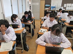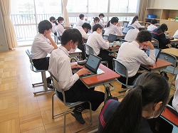 生徒は班でテーマを決めて富田の名所や歴史についてフィールドワークを行い、実際に富田地区を「見て」、地域の方々に話を「聞いて」、さらに追及することを「調べて」学んでいきます。自分たちが住んでいる地区について学習を深めることで、知らなかった魅力に気づくことや人と人とのつながりが深まる思いを体験してもらいたいと思います。