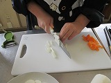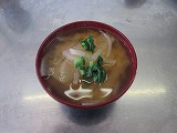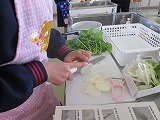 「輪切り」「いちょう切り」「半月切り」「千切り」に挑戦しながら、寒い冬に向けて体の温まるおいしいみそ汁作りを学びました。
