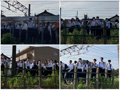 3年生が電車に乗って無事に出発しました。駅のホームでは仲間と笑顔で楽しそうに話していました。3日間、全力で楽しんできてください。