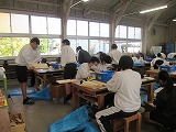 昨日は冷たい雨の一日でしたが、今日は体を動かすにはよい日となりました。1年生の体育では剣道で、「面を打つ練習」を行いました。3年生の体育では、バスケットボールです。ドリブル・止まる・パスを出してシュートを狙うなど一連の流れの確認をしていました。はまかぜさんは、テニスです。サーブ練習を行いました。技術室では、板をのこぎりで切ったり、サンダーをかけたり、釘をうったり、どんな入れ物ができあがるか楽しみです。