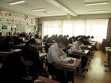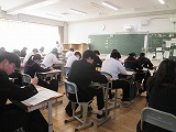 2学期末テストがはじまりました。先週末は比較的暖かい日ざしがありましたが、今日から冬本番といったところです。寒さに負けず換気は十分にしながらテストに取り組みたいと思います。2年生の英語ではリスニングに集中していました。