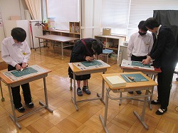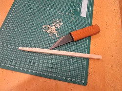 今日の1限目に1年生のはまかぜの授業で、自然教室で体験する「箸作り」の練習を行いました。小刀やカッターを使って恐る恐る取り組む姿や力加減を調整する大変さを感じながら一生懸命に木を削っていました。