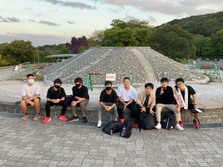 ニジゲンノモリでたくさん楽しみました。間もなく集合です。早いグループは、もう集まってきています。日が暮れてきました。
