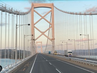 大鳴門橋を渡り淡路島に戻り、無事ホテルに到着しました。すっかり日が暮れて、間もなく夕食です。