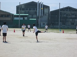 また別の時間にはグランドで、体力テストです。50m走やハンドボール投げをしていました。どちらも3年生のクラスでしたが、頑張りが見られる授業でした。