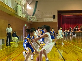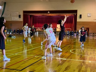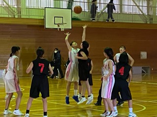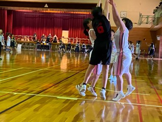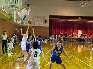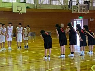 昨日の男子部に続き、換気や消毒等の感染症対策を徹底した中、長島中学校体育館にて女子の1・2回戦が行われました。1回戦は中部中学校。粘る相手に終始リードしながらも、最後の4Qまで接戦となりました。しかし、全員でしっかりと走りきり、集中したディフェンスを最後まで続けた試合は34-33で勝利。2回戦進出!