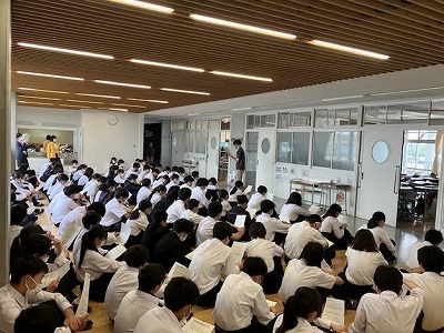 今日は2年生の学年集会で、タブレットの使い方について改めてプリントを配布して説明を行いました。授業が本格的に始まり、タブレットの充電が切れる生徒が多々いる中で、充電を家ですることや貸し出し用の利用方法などの説明を行いました。また、授業や休み時間に学習以外で使用するなどの生徒が出ないように声掛けもさせてもらいました。これからも学習意欲や意識を高めるツールとしてタブレットを有効に活用していきましょう。
