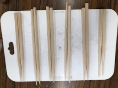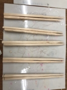 二日目は、ひのきを使った箸作りに挑戦しました。小刀を使った経験が少ない人も多く、昨日のノコギリよりも最初は苦戦していました。しかし、自分だけのお箸が完成すると、大満足です。この後の野外炊事で早速このお箸を使って食べる予定です。桧の木屑も野外炊事の焚き付けで使います。