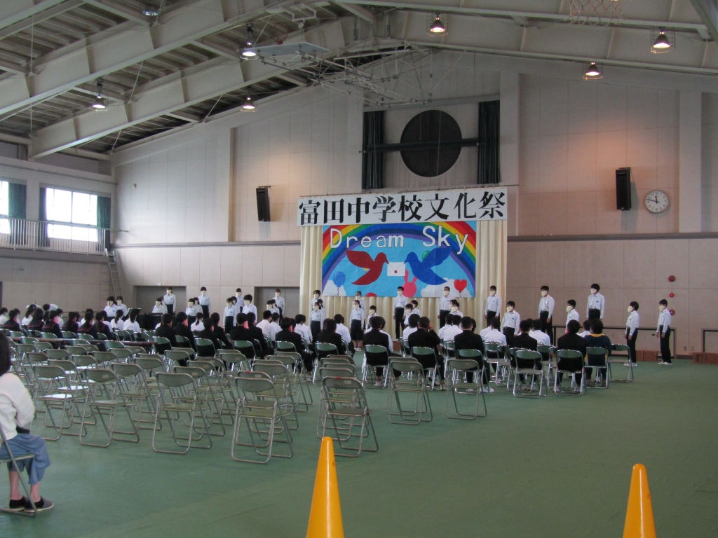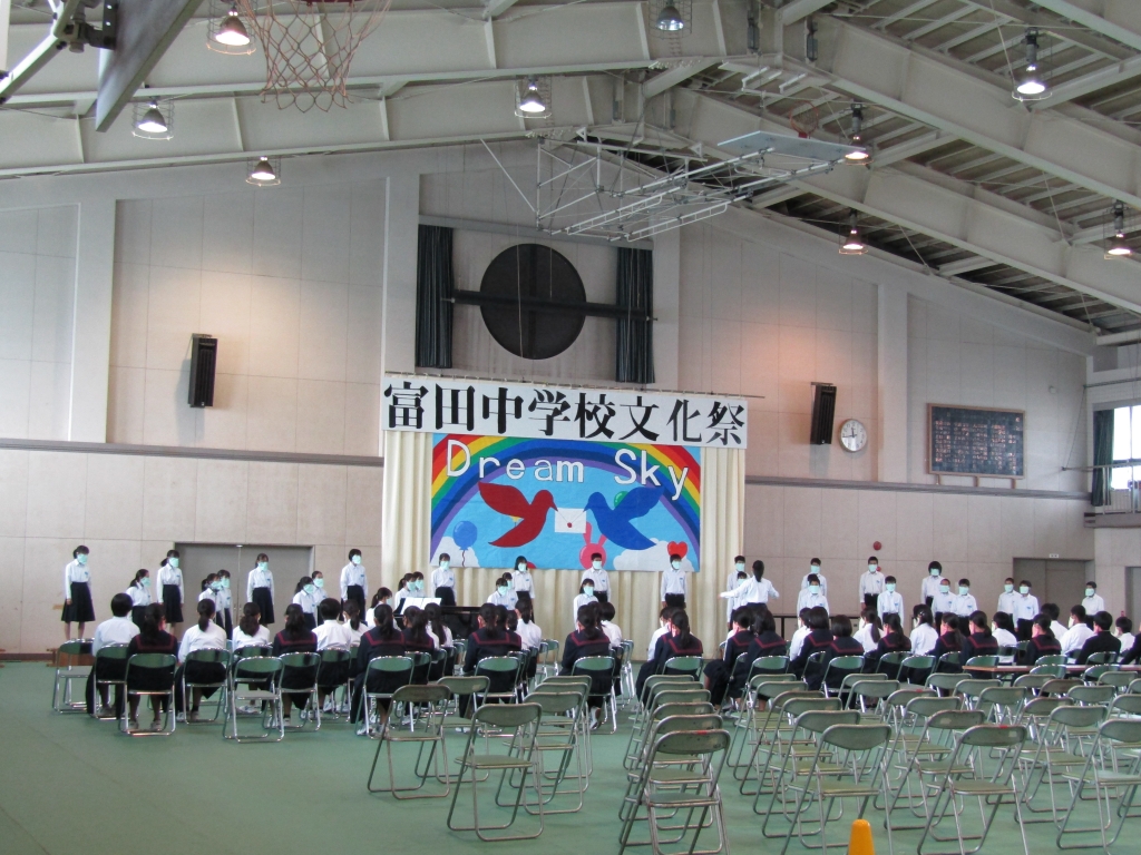 学年練習の時と比べて、やはり少し緊張していた様子が見られました。しかしどのクラスも、コロナ禍で制約の多い中でも心を一つにして歌おうと、懸命に練習した成果を見せてくれました。保護者の皆様にもそのような姿を見ていただいたことを本当に嬉しく思います。文化祭当日は、どのクラスも今までで最高の合唱を披露してくれることでしょう。期待しています!