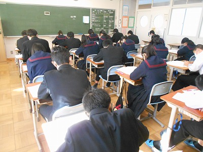 1月8日(金)、放送による始業式が行われ、その後、実力テスト。いよいよ富田中学校で過ごす最後の3学期が始まりました。1月15日(金)~19日(火)には卒業テストも行われます。