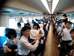 新幹線では、他の乗客の方の迷惑にならないよう気をつけながら、カードゲームをしたりおやつを食べたりしています。富士山も見れました!