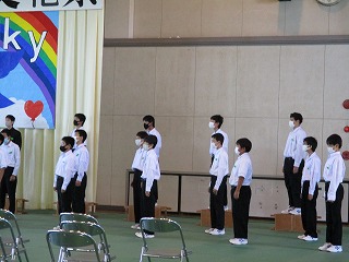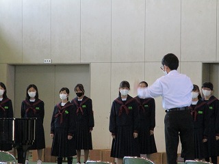最初に座席や入退場の確認。そしてB組からはじまった合唱。どのクラスも、今までの練習の成果を出そうと一生懸命です。お互いの合唱を聴き合い、良い刺激となったことで2回目の合唱では一段と声が出ていました。