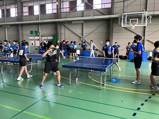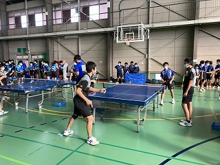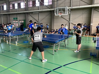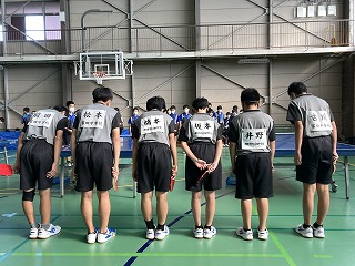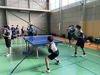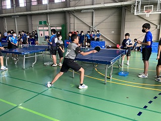 卓球部団体戦の1回戦。対中部中学校戦。一進一退の白熱した戦いになりました。2年生と1年生が一つにまとまり、メンバーの応援を受けながら頑張る富中。2勝2敗となって最後の1戦で勝敗が決まります。1年生の井野さんです。みんなの思いを受け必死に頑張りました。見事勝利して1勝です!2回戦では残念ながら敗退しましたが、次につながる大会となりました。これからも頑張れ卓球部!