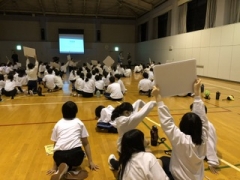 夕食後は、レクレーション。班で相談しながらクイズの答えを考えました。とてもよい雰囲気で、大盛り上がりでした!