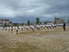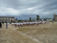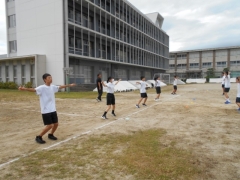 体育祭の取り組みが始まりました。10月8日の体育祭に向けて学年の取り組み(学年練習)が始まりました。本日は2限目。体育科の今井先生の指導で、練習開始。