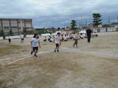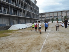 各クラスの待機場所を確認して、学級対抗全員リレーを試走してみました。