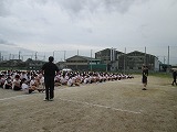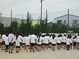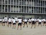 開会式・閉会式の集合隊形とラジオ体操を中心に確認しました。ラジオ体操は、1番目の種目となります。声をしっかり出して、完成度をあげていこうという話ををしました。