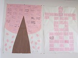 3年生のオープンスペースに富中の文字になって飾られています。部活動でお世話になった先輩へのメッセージなどさまざまです。