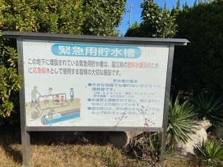 【緊急用貯水槽も見学をしました。飲料水として活用します。毎月の定期点検と合わせて毎年水道局が緊急時の訓練を行っています】