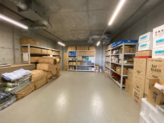 【教室棟5階「防災備蓄倉庫】も見学しました。常時20度に設定されています。中学生も備蓄米等を使用した炊き出し訓練をしています】