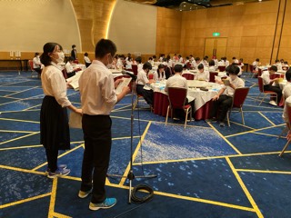 食後の連絡です。実行委員から、この後の行動予定、諸注意等についての話がありました。いよいよ明日は最終日。たくさんお土産も買ったので、この後の荷造りが一仕事です。