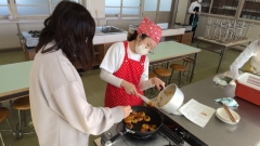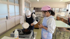 3学期最初の調理実習は「芋餅」です。はまかぜ農園で収穫したさつまいもをゆでて、つぶして片栗粉を混ぜておもちにしました。みたらし餡をかけてできあがり。さつまいもバージョンと、じゃがいもバージョンを作り、食べ比べ!どちらもとても美味しくできあがりました。