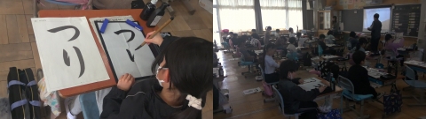 算数で、担任が用意した直方体や立方体の箱をつかい、それぞれの面の数、頂点の数、辺の数を数えていました。