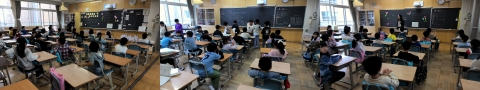 2限目は、町別児童会で、登校班の班長が教室まで迎えに来てくれて、それぞれ住んでいる地区の該当教室に移動しました。