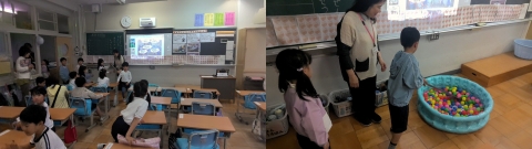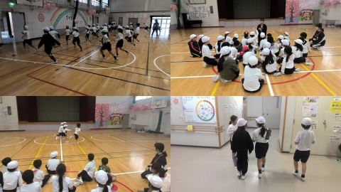 その後、2年生はあいさつ、3年生は給食、4年生はそうじ、5年生は勉強、6年生は行事について、6年生が分担してクイズをしたり、それぞれの内容を学年全員で伝えたりしていました。どの学年の子たちは事前に練習していたこともあり、とても張り切って伝えていました。そんな思いが1年生にも伝わっていたと思います。