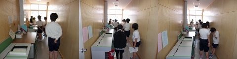 3年生の教室に入ると,6年生の子が,3年生に何か伝えていました。