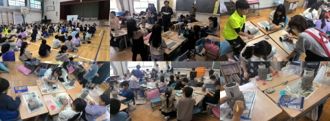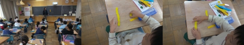 机の班の形にして,協力して何かのコーナーを作るようです。
