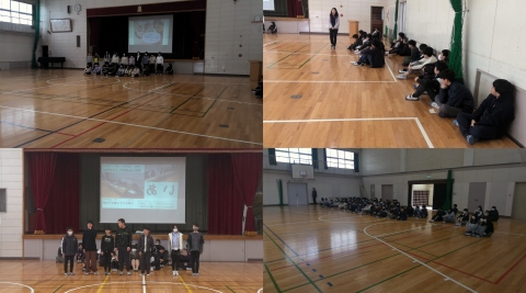 ②中学生との人権フォーラム(左利きの世界、外国語の世界、手話、車いすの世界といった少数派の世界体験することで感じたこと)