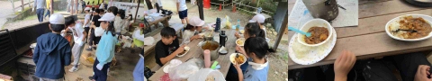 カレーについては、水の量が班によって違いがありましたが、カレー自体は何杯もお替りしている子たちがいました。ほかの班のカレーも「味見させて」と言いながら食べ比べていました。