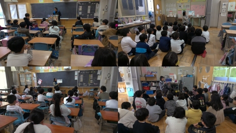3年4組では、栗本さんに、「だじゃれ 日本一周」